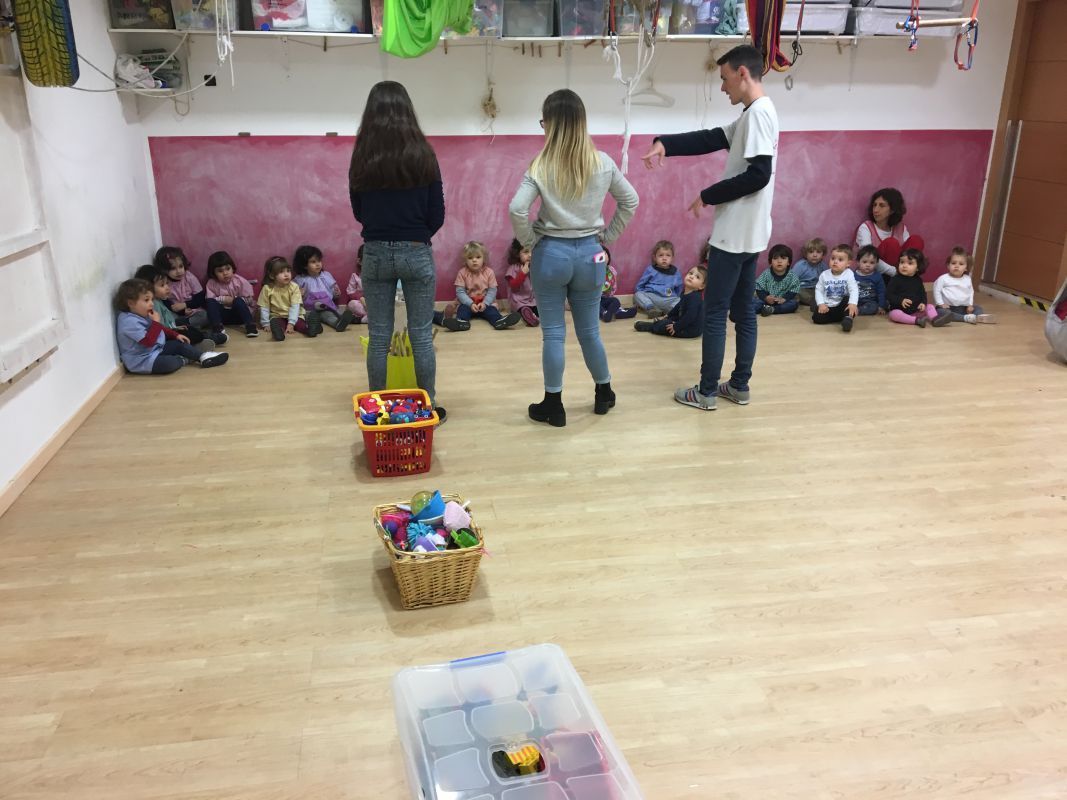 El solvent equip d'investigadors, ha agafat grupets de nens i nenes dels Ànecs, dels Dofins i dels Vaixells i els Dracs (és a dir des dels més petits fins als més grans de l'escola) i els han acompanyat a la sala polivalent. Allà, amb l'ajuda d'una mestre, els hi han posat al seu abast joguines de cadascuna de les classes, i han permès que poguéssin interactuar entre totes les edats...