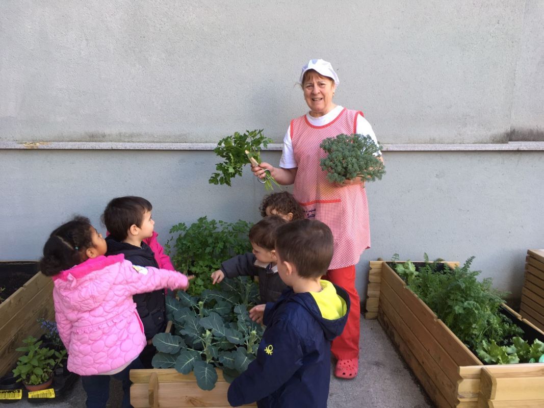 Tothom parla dels productes de proximitat, de les verdures "Km 0"... Doncs aquí, al Saltiró, tenim fruites i verdures de "Km -1": Només ens cal pujar al pati a buscar-les! La nostra cuinera, la Juani, acompanyada dels experimentats pagesos i pageses de l'escola, recull uns productes que no són frescs, no... Són fresquíssims! Aquí la veiem apropiant-se d'un bròquil que fa goig de veure.